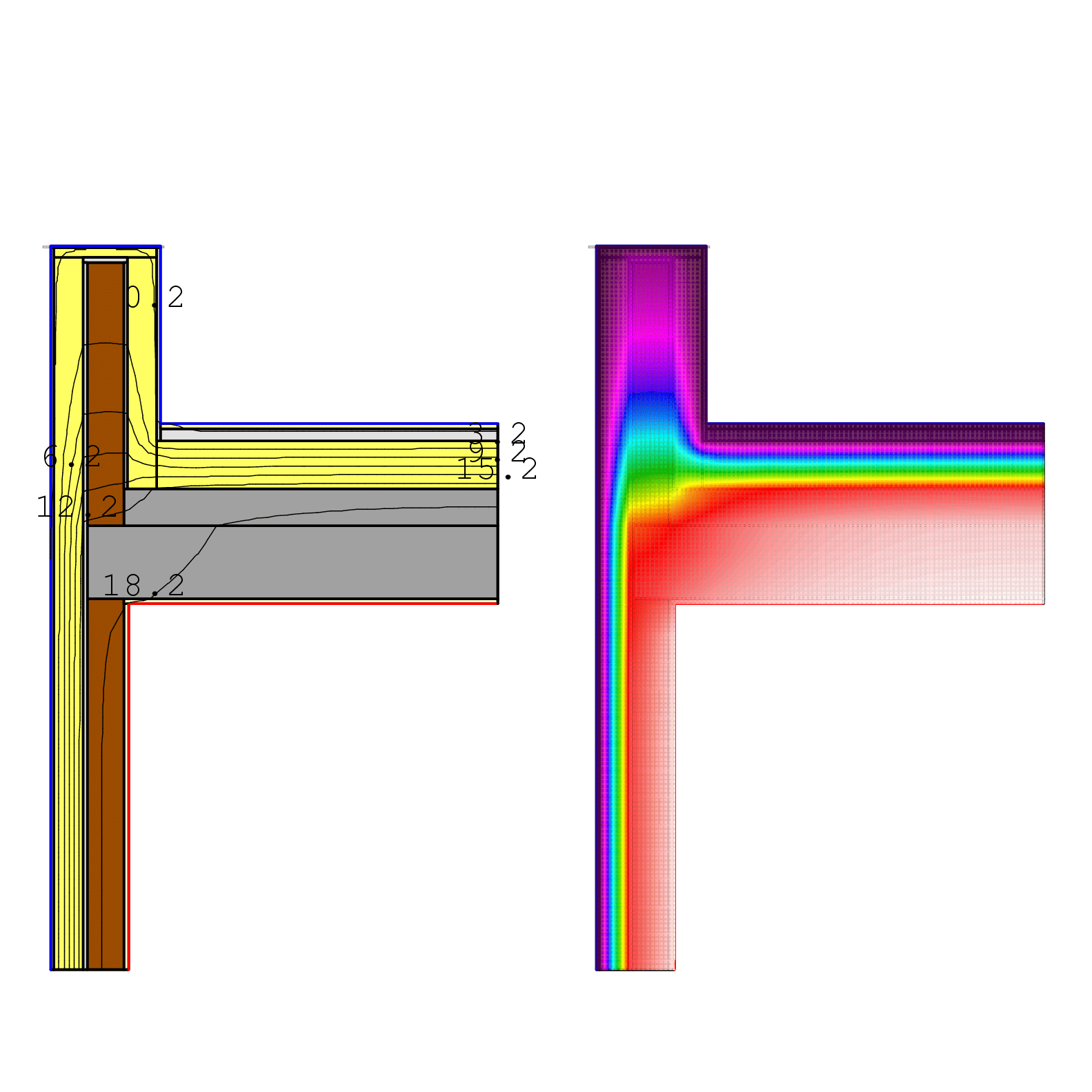 Pont tèrmic a la trobada d’una façana aïllada per l’exterior i una coberta aïllada, amb un ampit d’obra de maó perforat envoltat d’aïllant.